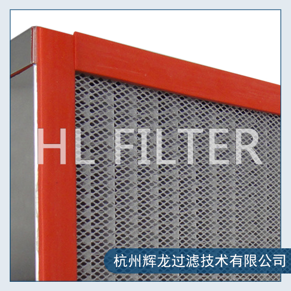 主要以高性能的耐高溫超細(xì)玻璃纖維濾紙作過濾介質(zhì),鋁箔瓦楞片作間隔物,SUS304不銹鋼板作框架,用耐高溫密封膠密封裝配而成。其特點(diǎn)是過濾效率高、阻力低、耐高溫性能好。主要用于超凈烘箱等要求高溫空氣凈化的設(shè)備和系統(tǒng)。
